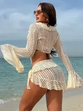 4PCS Halter Mesh Sarong Long Sleeve Bikini Female Swimsuit Women Swimwear Four-pieces Bikini Set Bathing Suit Swim Beachwear
