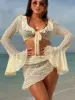 4PCS Halter Mesh Sarong Long Sleeve Bikini Female Swimsuit Women Swimwear Four-pieces Bikini Set Bathing Suit Swim Beachwear