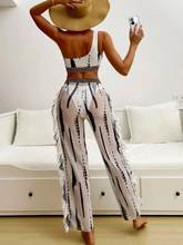 Allover Print One Shoulder Bikini Swimsuit & Cover Up Pants Swimwear Female Bathers Bathing Swimming Suit Summer Beachwear