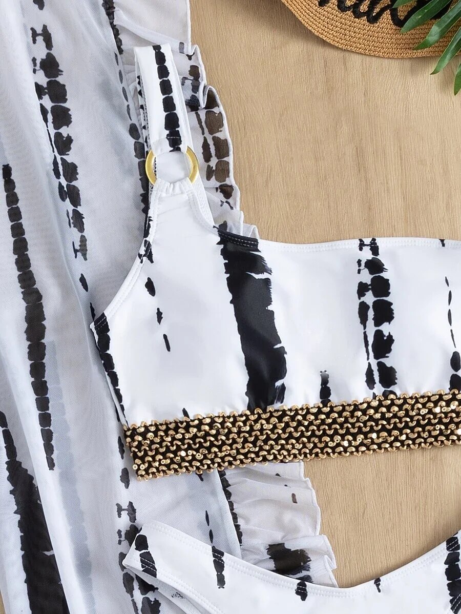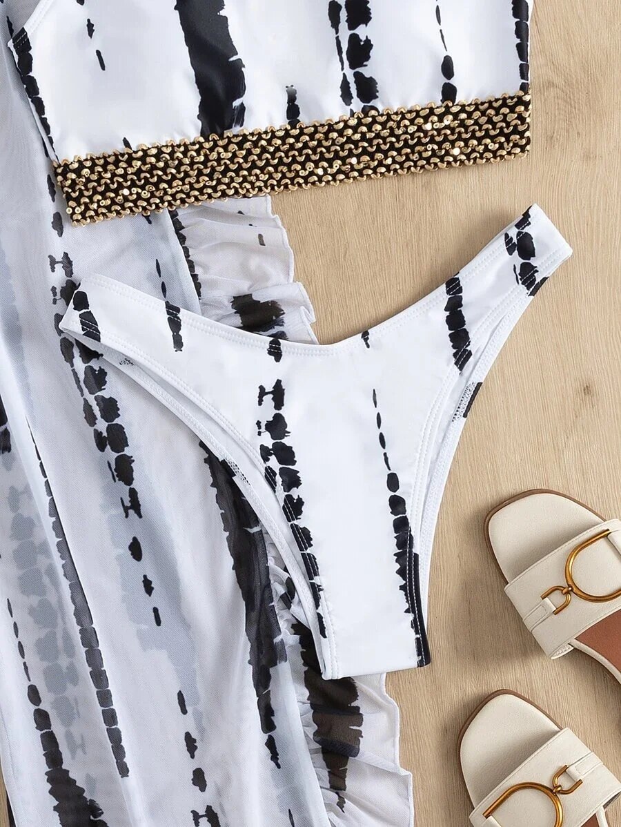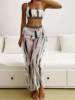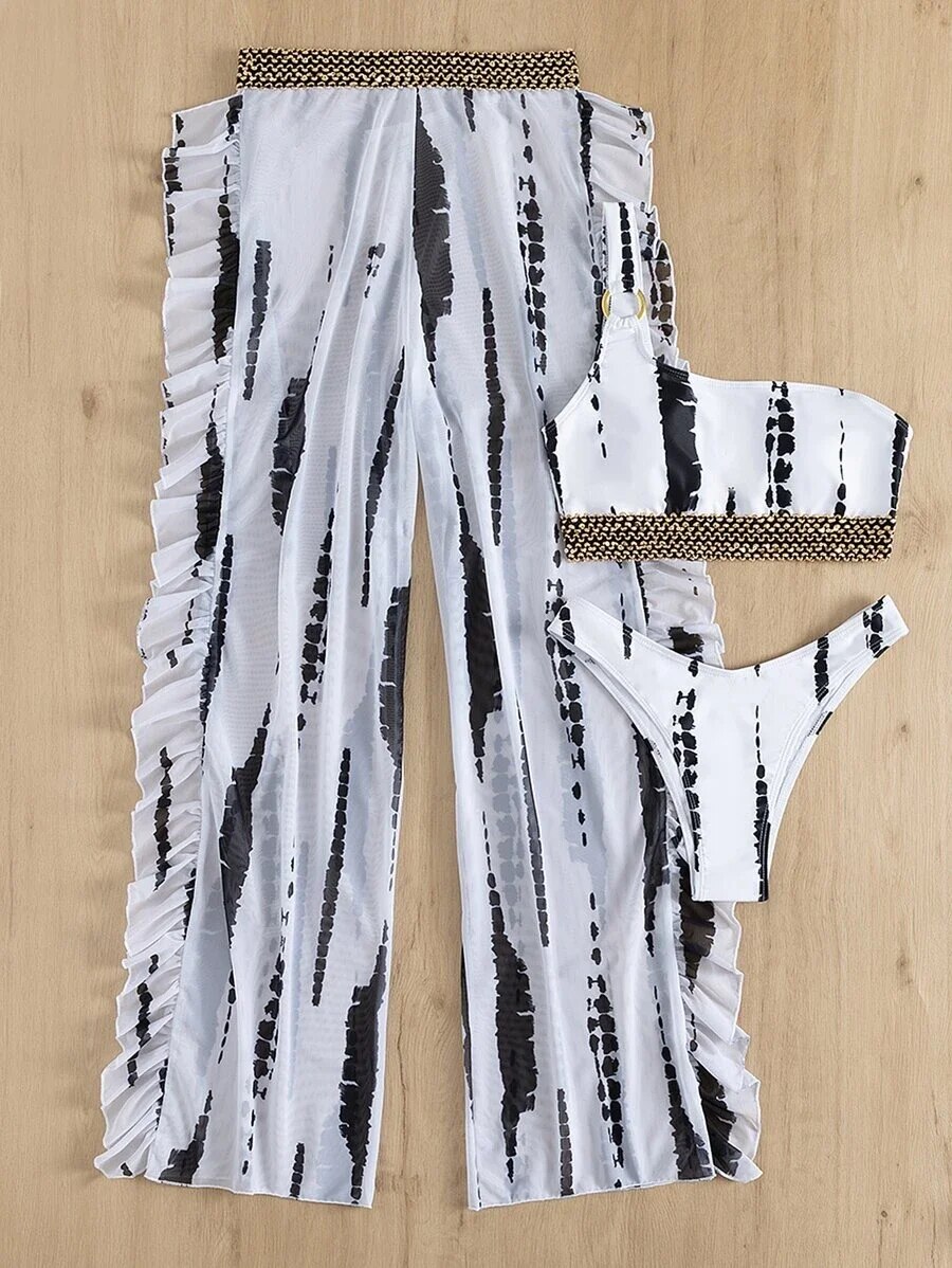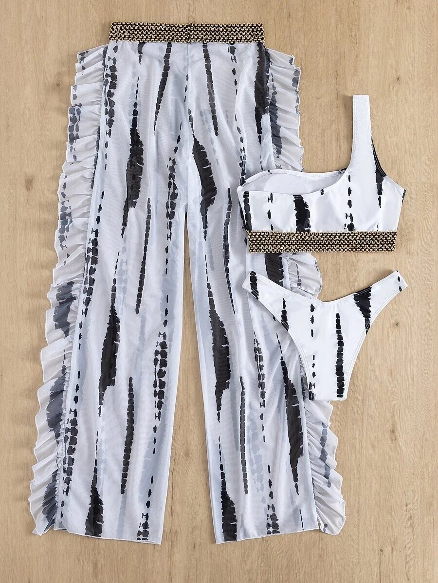 Allover Print One Shoulder Bikini Swimsuit & Cover Up Pants Swimwear Female Bathers Bathing Swimming Suit Summer Beachwear