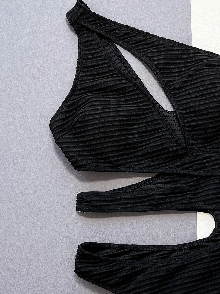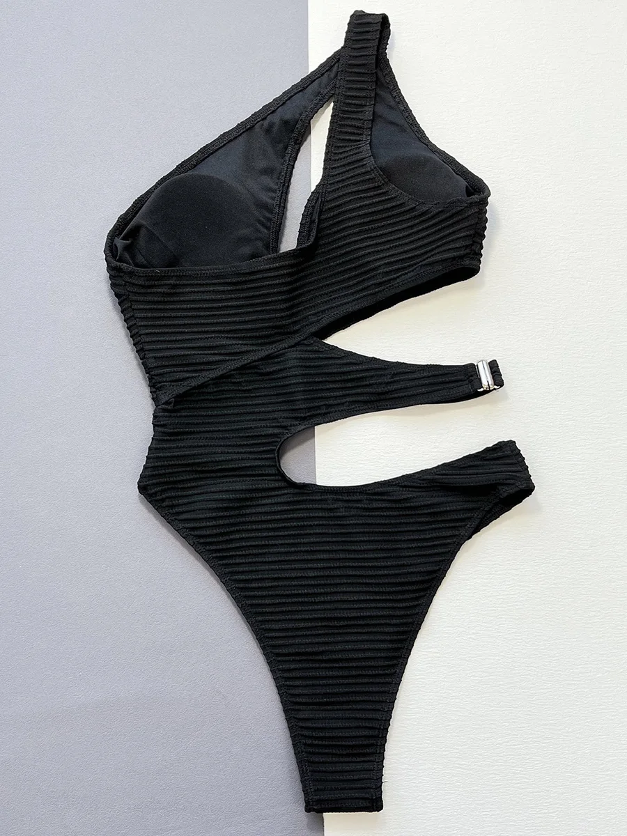 Asymmetric Hollow Out One Shoulder Women Swimwear One Piece Swimsuit Female High Cut Monokini Wrinkled Bathing Suit Swim Lady