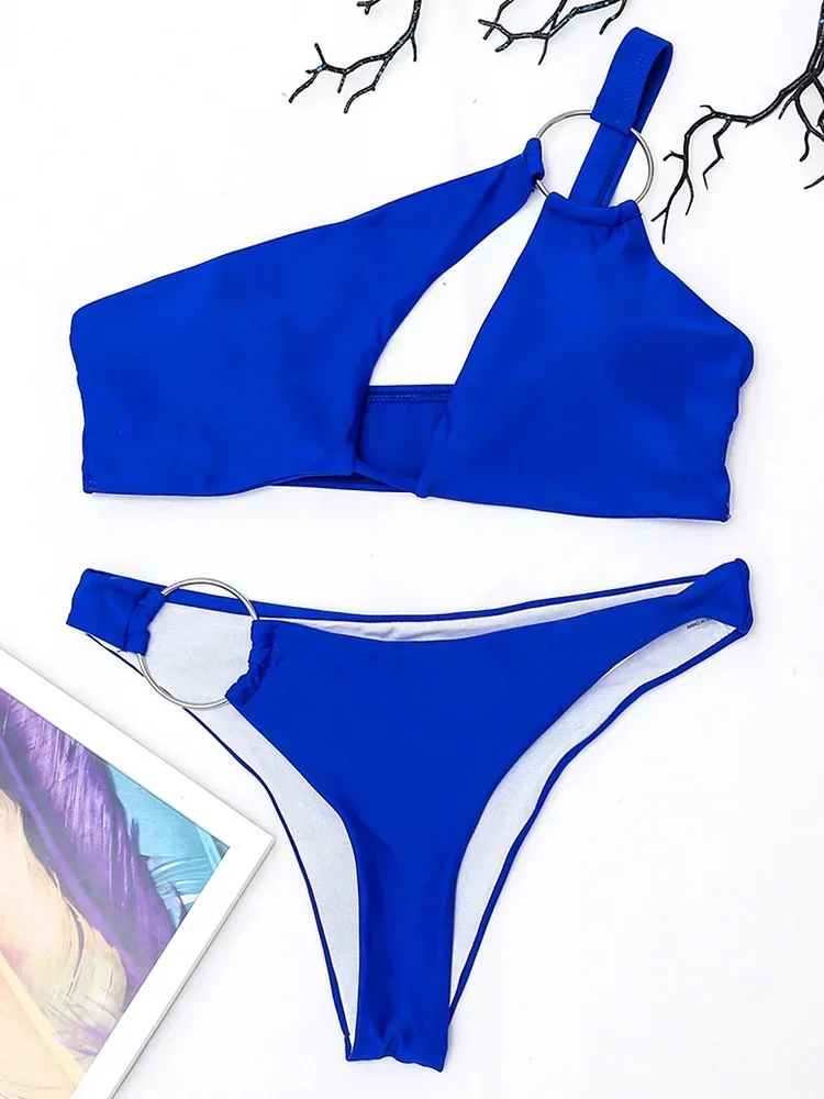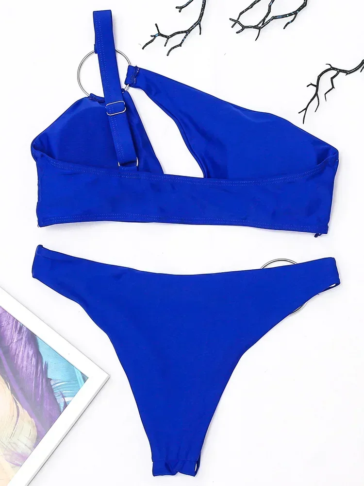 Asymmetric One Shoulder Cut Out Bikini Women Swimwear Female Swimsuit Two-pieces Bikini set High Cut Bather Bathing Suit Swim