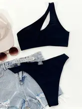Asymmetric One Shoulder High Waist Bikini Women Swimwear Female Swimsuit Two-pieces Bikini set Rings Bather Bathing Suit Swim