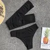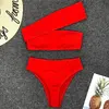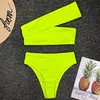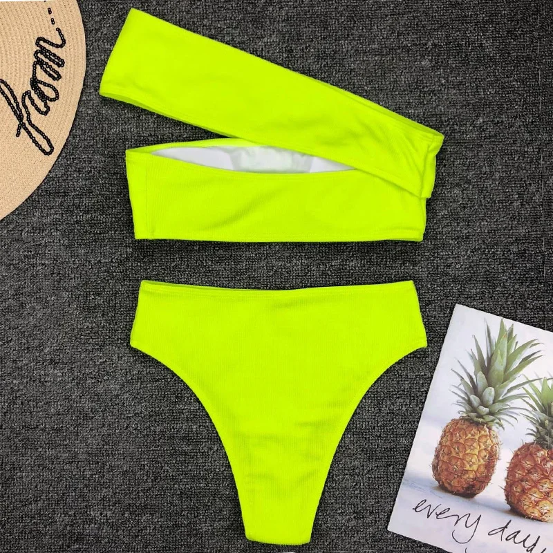 Asymmetric Ribbed High Waist Bikini Women Swimsuit One Shoulder Swimwear Female Bikini Set Bather Bathing Suit Swim Beachwear