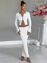 Autumn Winter Two Piece Sets Women Long Sleeve Cardigan T-shirt And Maxi Skirt Matching Skirt 2 Piece Sets Clothes