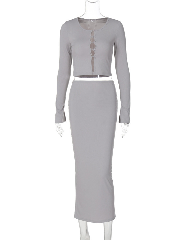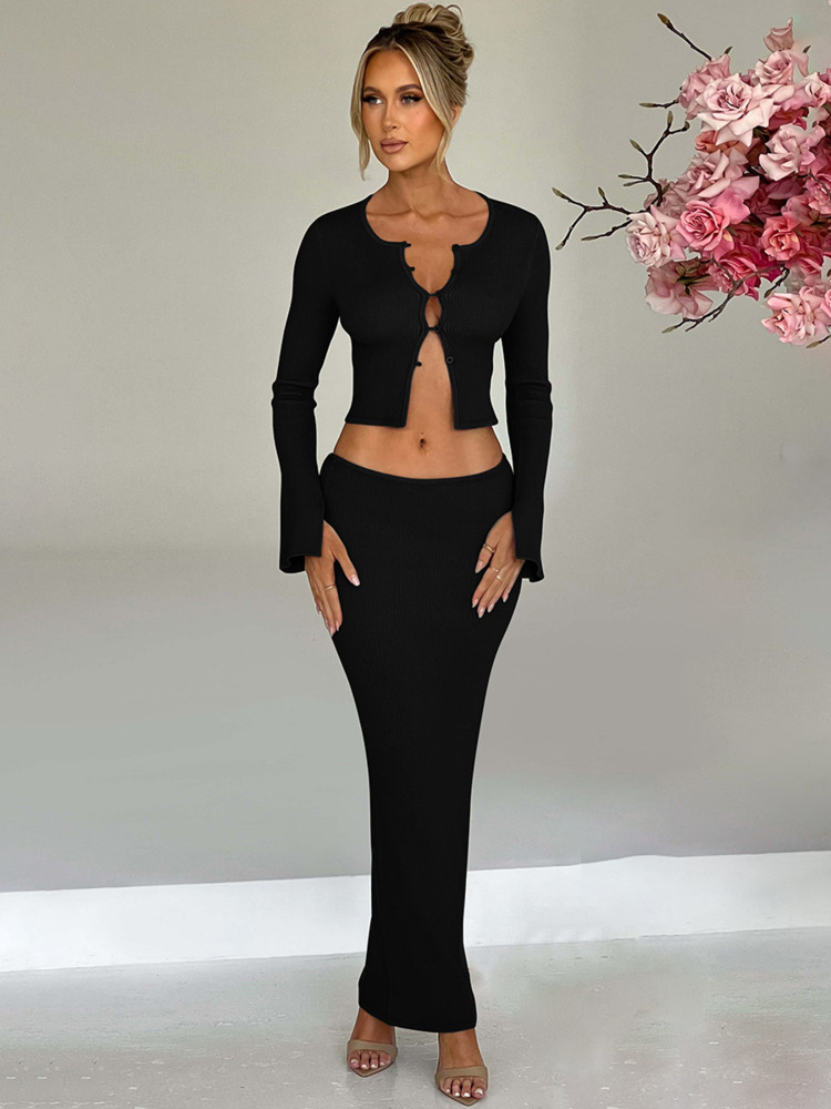 Autumn Winter Two Piece Sets Women Long Sleeve Cardigan T-shirt And Maxi Skirt Matching Skirt 2 Piece Sets Clothes