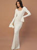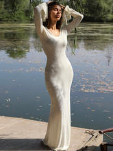 Autumn Winter Women’s Woolen U Neck Flare Sleeve Maxi Dress Long Sleeve Soild Slim Fit Holiday Dress New