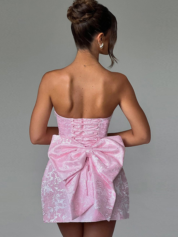 Backless Bow Mini Dress For Women Off-shoulder Strapless Sleeveless Bodycon Club Party Dress Elegant