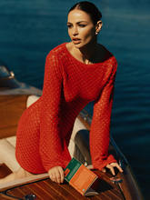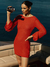 Backless Long Sleeve Knit Mini Dress For Women Elegant Spring Summer See Through Beach Holiday Dress Beachwear