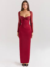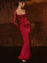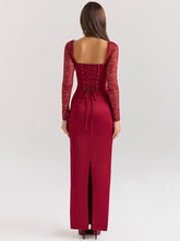 Backless Long Sleeve Maxi Dress For Women Solid Square Collar Lace-up Back Split Bodycon Club Long Dress Elegant