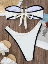 Bandeau Splicing Metal Ring Brazilian Bikini Women Swimwear Female Swimsuit Two-pieces Bikini Set Bather Bathing Suit Swim Lady