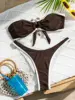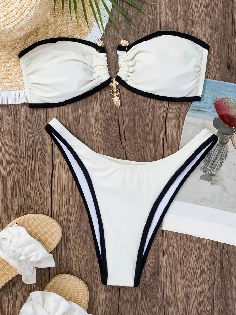 Bandeau Splicing Metal Ring Brazilian Bikini Women Swimwear Female Swimsuit Two-pieces Bikini Set Bather Bathing Suit Swim Lady