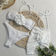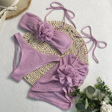 Beach Vacation 3-piece Set 3D Flower Bikini Set Women 2025 Bathing Suit Women High Cut Micro Halter Swimsuim