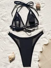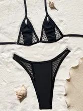 Black Fishnet Mesh Bikini Women Hollow Out Swimwear Female Swimsuit Two Pieces Bikini Set Brazilian Bathing Suit Swim Beach Wear