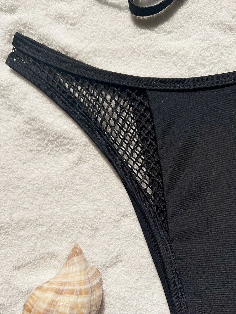 Black Fishnet Mesh Bikini Women Hollow Out Swimwear Female Swimsuit Two Pieces Bikini Set Brazilian Bathing Suit Swim Beach Wear