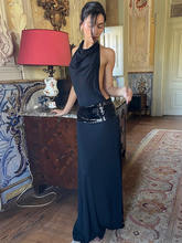 Black Halter Backless Maxi Dress For Women Gown Elegant Glitter High Waist O Neck Sleeveless Long Dress Elegant