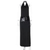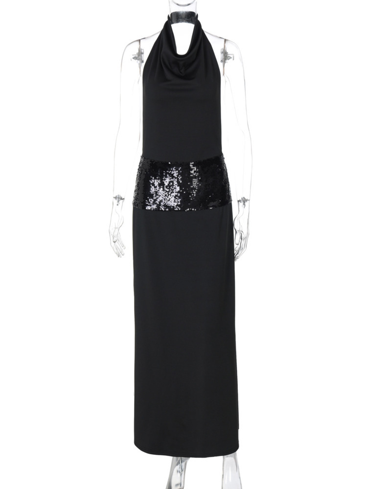 Black Halter Backless Maxi Dress For Women Gown Elegant Glitter High Waist O Neck Sleeveless Long Dress Elegant