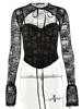 Black Lace Mini Shirts Tops Women Elegant Hollow Out Sheer Flare Long Sleeve Slim Club Party Tops Clubwear