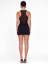 Black See Through Mesh Ruched Mini Dress For Women Robe Summer Zipper Sleeveless Skinny Draped Club Dress