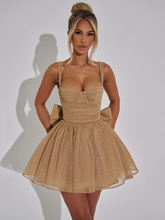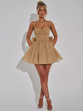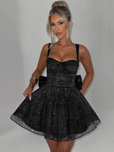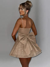 Bow Backless Mini Dress For Women Robe Spaghetti Strap Sleeveless Backless High Waist A-line Club Dress Vestido