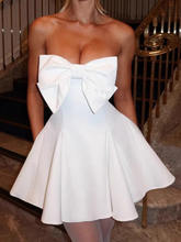 Bow Strapless Backless Mini Dress For Women Robe Solid Off-shoulder Sleeveless A-line Club Dress Vestido