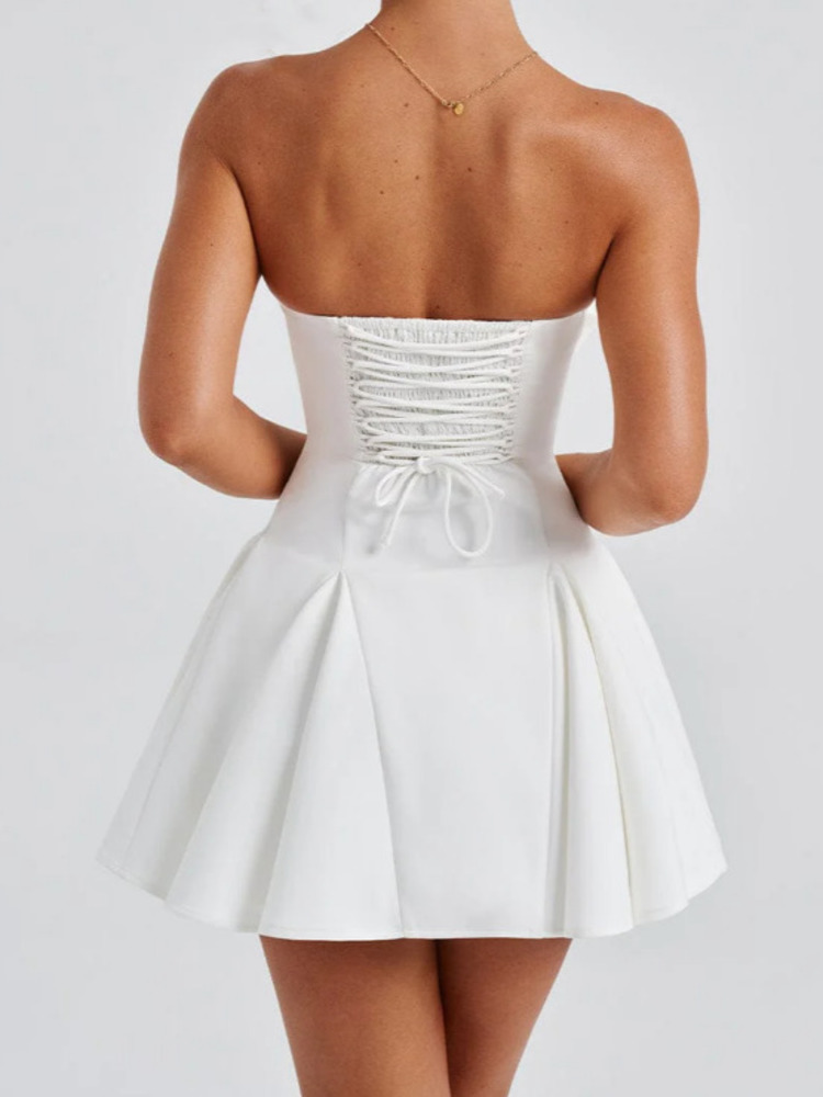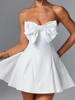 Bow Strapless Backless Mini Dress For Women Robe Solid Off-shoulder Sleeveless A-line Club Dress Vestido