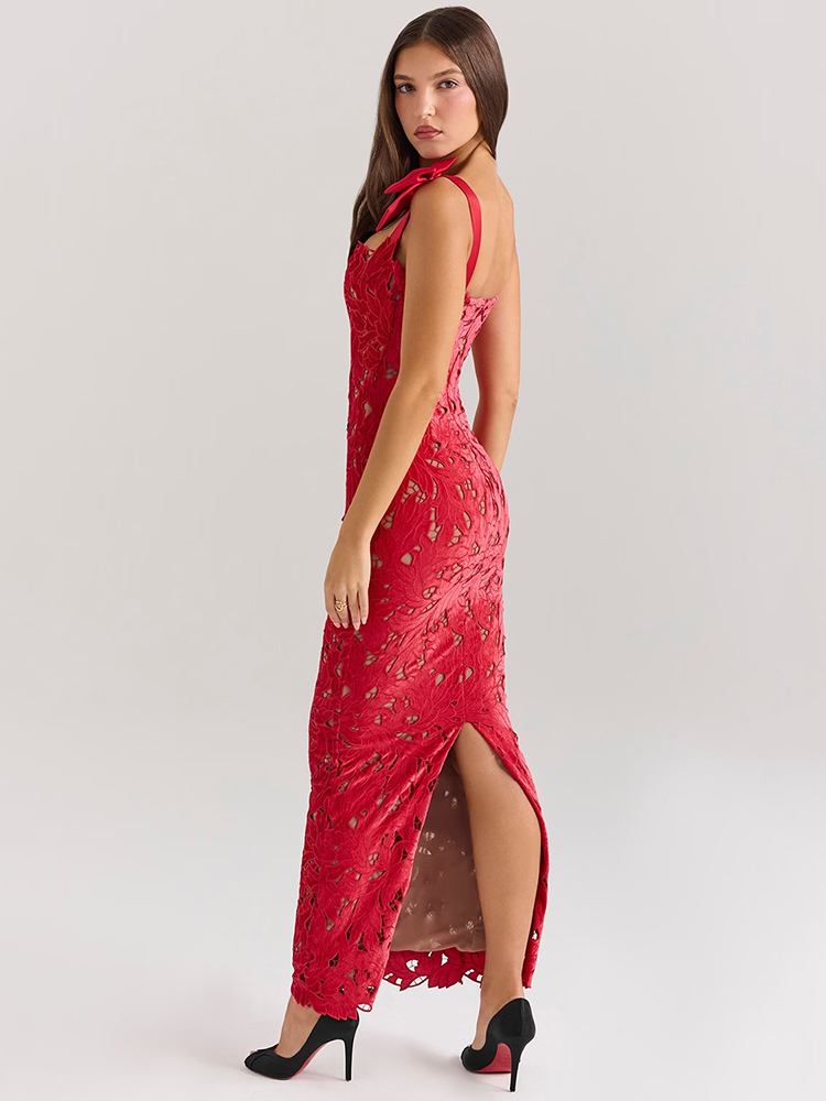 Bows Lace Maxi Dress For Women Sleeveless Backless Bodycon Year’s Birthday Club Party Long Dress