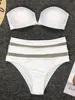 Bra Cup Bandeau Bikinis High Waist Bikini Women Swimsuit Female Swimwear Two-pieces Bikini Set Mesh Bathing Suit Swim Lady