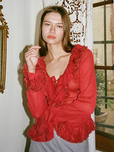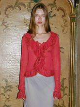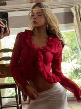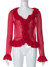 Chiffon Cardigan T-shirt Women V Neck Long Flare Sleeve Tops Femme See Through Ruffled T-shirts Elegant Tops