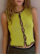 Contrast Color Knit Sweater Vest Women O Neck Single-btrasted Sleeveless Crop Tops Ladies Knitted Tops Vest