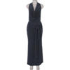 Deep V Neck Backless Maxi Dress For Women Elegant Hollow Out Bandage Sleeveless Bodycon Club Long Dress Fashion