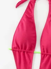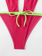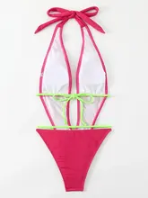 Deep V Neck Backless Ribbed High Cut Women Swimwear One Piece Swimsuit Female Wrap Around Monokini Bather Bathing Suit Swim Lady