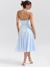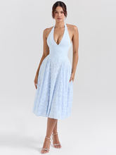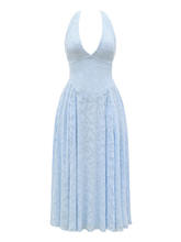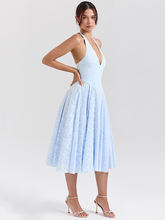 Deep V Neck Halter Madi Dress Women Sleeveless Backless A-line Loose Pleated Evening Long Dress Elegant