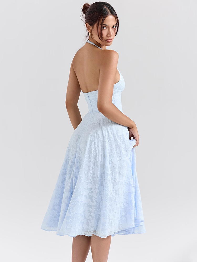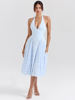 Deep V Neck Halter Madi Dress Women Sleeveless Backless A-line Loose Pleated Evening Long Dress Elegant