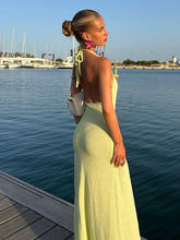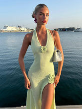 Deep V Neck High Split Maxi Dress For Women Gown Halter Flower Backless Sleeveless Bodycon Knit Long Dress Elegant