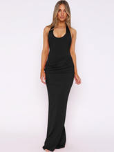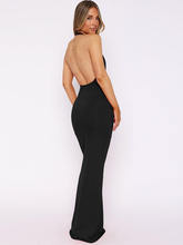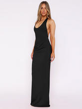 Deep V-neck Neck-mounted Backless Solid Hollow Out Sleeveless Maxi Dress For Women High Waist Slim Fit Long Dress