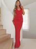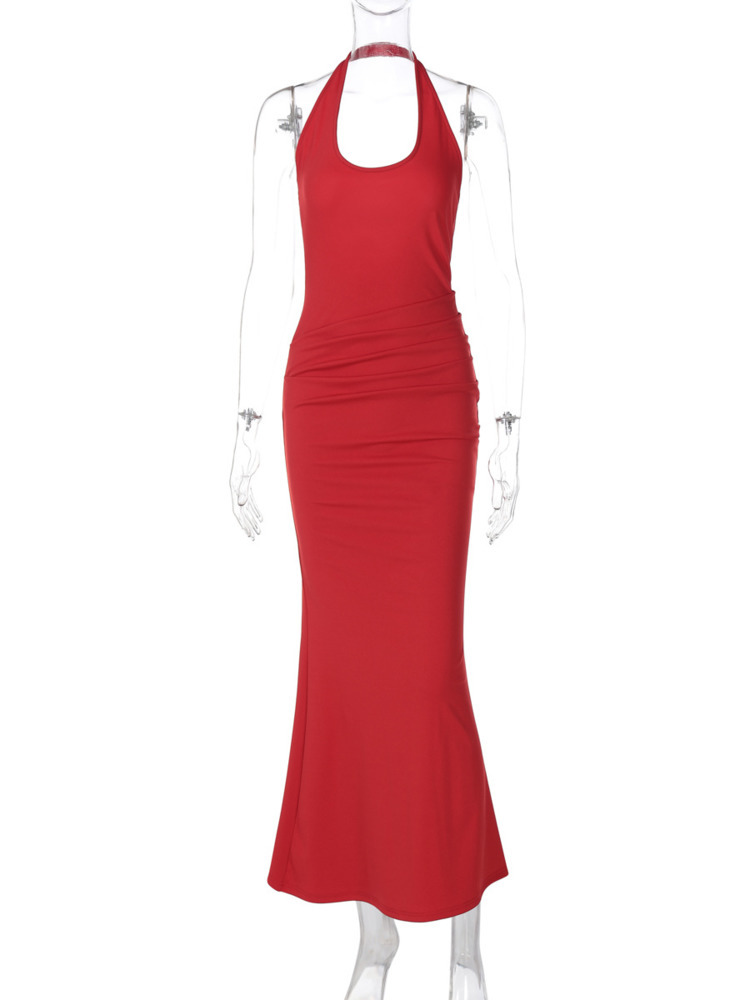 Deep V-neck Neck-mounted Backless Solid Hollow Out Sleeveless Maxi Dress For Women High Waist Slim Fit Long Dress