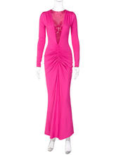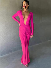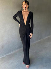 Deep V Neck Ruched Maxi Dress Women Gown Autumn Long Sleeve Backless Bodycon Party Evening Dress Vestidos