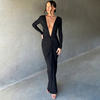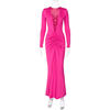 Deep V Neck Ruched Maxi Dress Women Gown Autumn Long Sleeve Backless Bodycon Party Evening Dress Vestidos
