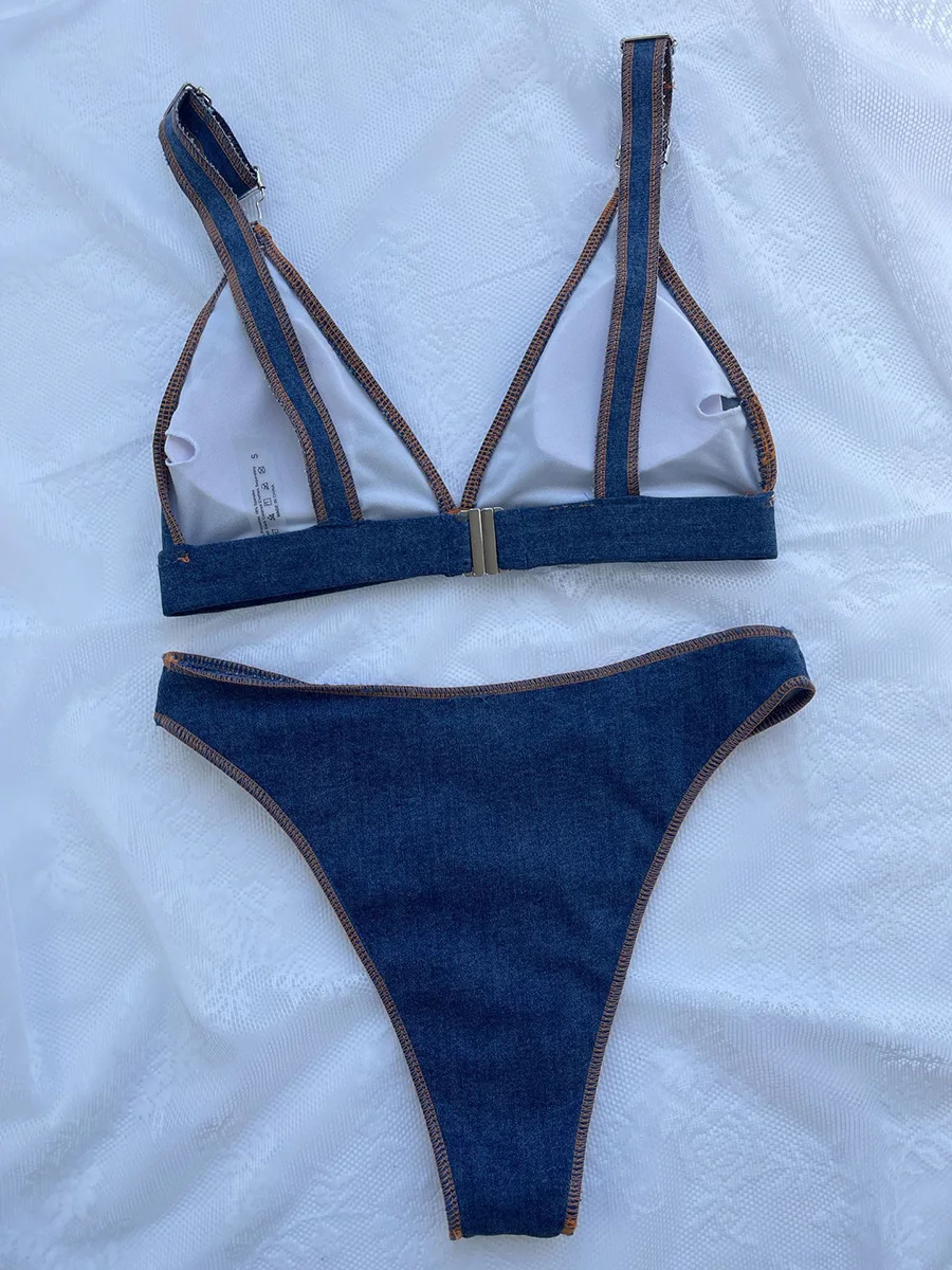 Denim Blue Brazilian High Cut Bikini Female Swimsuit Women Swimwear Two-pieces Bikini set Bather Bathing Suit Swim Lady