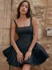 Elegant Backless Bow Mini Dress For Women 2025 Autumn Square Collar Sleeveless Ruffles Dress Vintage Fashion