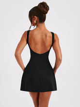 Elegant Backless Mini Tank Dress For Women Black O Neck Sleeveless Club Party A-line Basics Dress New