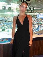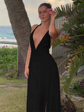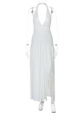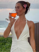 Elegant Halter Backless Maxi Dress For Women Gown Solid Deep V Neck Sleeveless Backless Ruched Long Dress