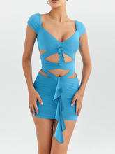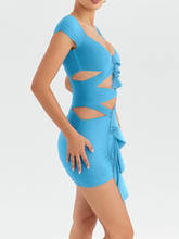 Elegant Hollow Out Backless Mini Dress For Women Solid Sleeveless Draped Party Dress Clubwear New