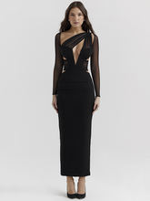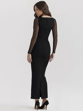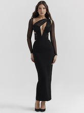 Elegant Hollow Out Bodycon Maxi Dress For Women Mesh Sheer Long Sleeve Club Party Long Dress