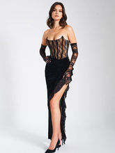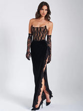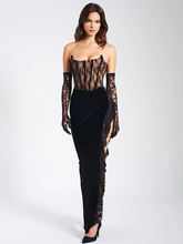 Elegant Lace Strapless Maxi Dress For Women Black Sleeveless Backless Bodycon Club Party Long Dress