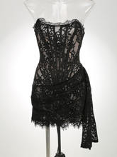 Elegant Lace Strapless Mini Dress For Women Off-shoulder Irregular Ruched Bodycon Night Club Party Dress