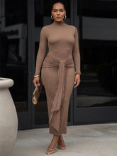 Elegant Long Sleeve Maxi Dress For Women Gown Drape Turtleneck Ruched Bodycon Club Party Long Dress