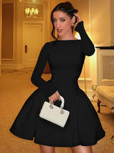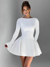 Elegant Long Sleeve Mini Dress For Women Solid O Neck High Waist A-line Bodycon Club Party Dress Clubwear New