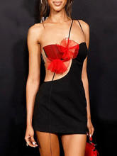 Elegant Red Flower Backless Mini Dress For Women Strapless Backless Bodycon Club Party Dress New